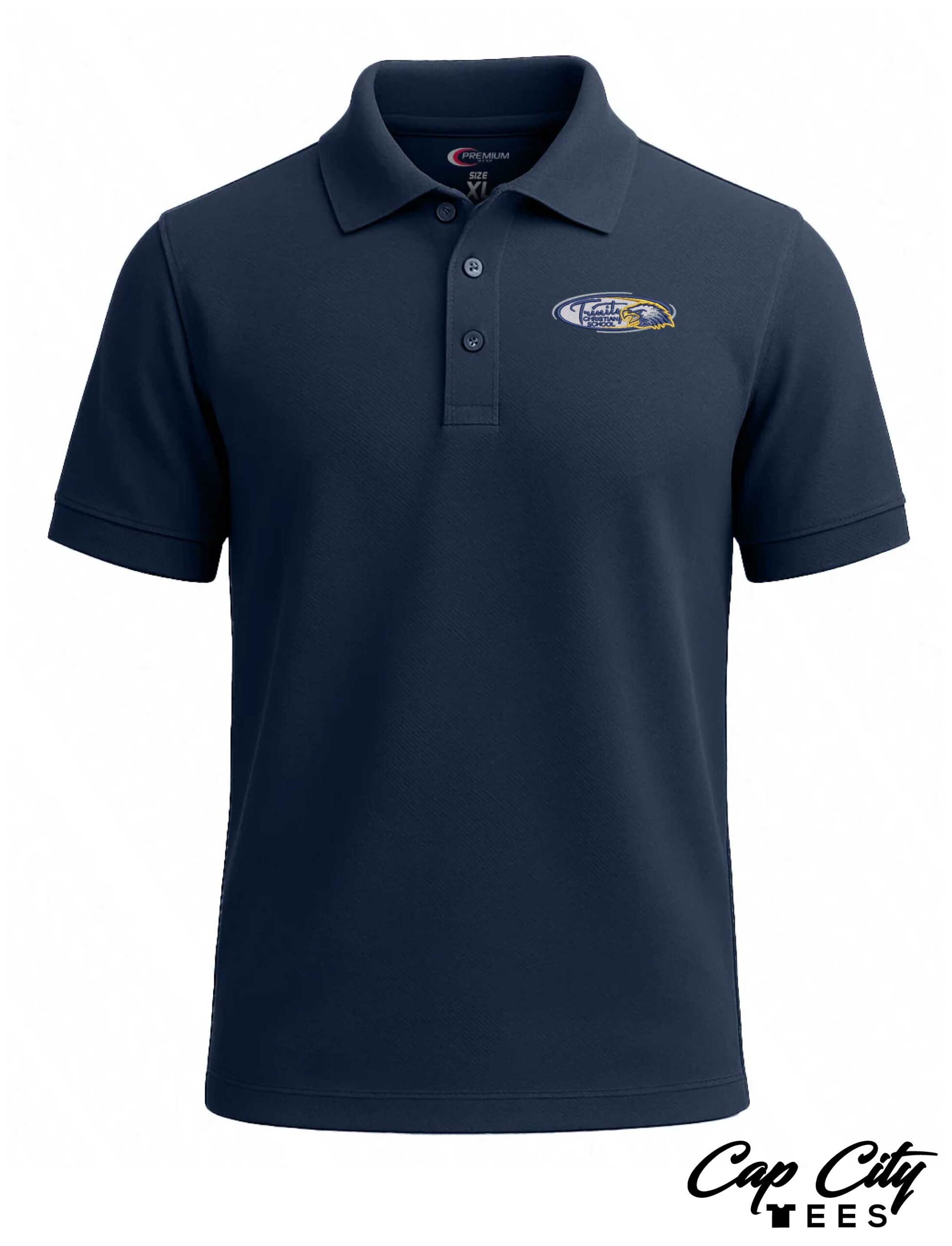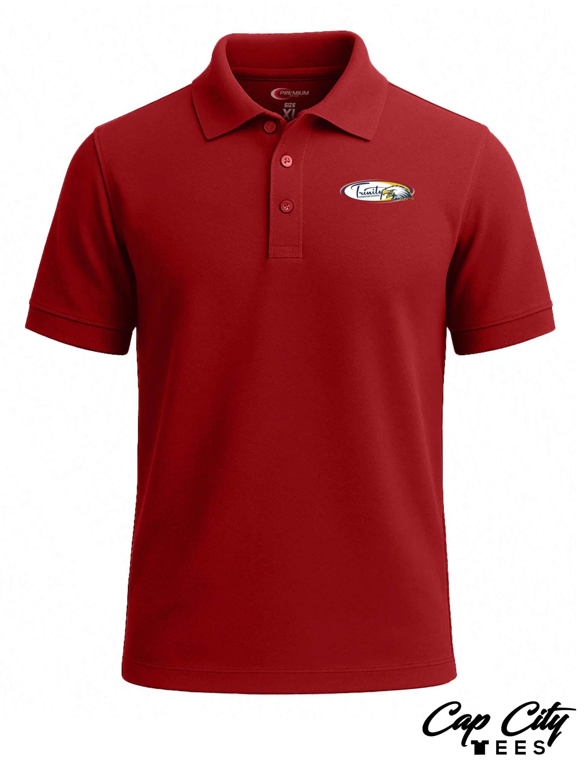 Looking for ways to meet the TCS uniform requirement while still showing school spirit?  Look no further than the pique polo shirt.  Pricing includes either a screen print or embroidery option on the left chest.